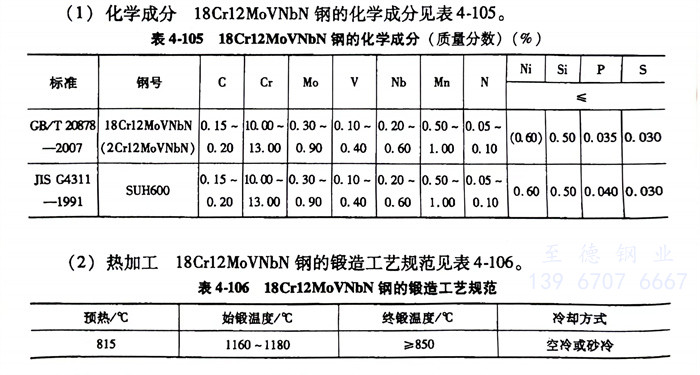 18Cr12MoVNbN(2Cr12MoVNbN)SUH600不(bu)銹鋼的鍛造工藝規范見表4-106。