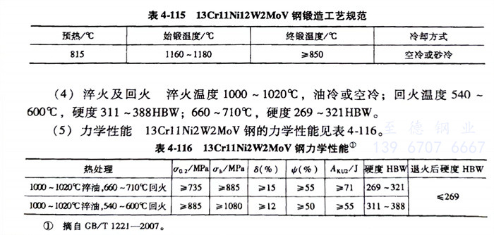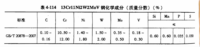 13Crl1Ni2W2MoV(1Cr11Ni2W2MoV)不銹(xiu)鋼的化(hua)學成分見表4-114。