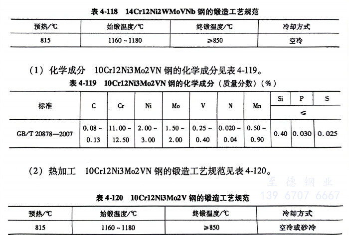 14Cr12Ni2WMoVNb(1Cr12Ni2WMoVNb)不銹(xiu)鋼的(de)鍛(duan)造工藝規(gui)范見表4-118。
