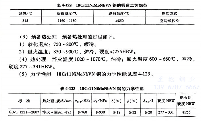 18Cr11NiMoNbVN(2Cr11NiMoNbVN)不銹鋼(gang)的鍛造工(gong)藝規范見(jian)表4-122。