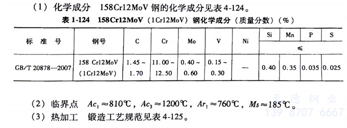 158Cr12MoV(1Cr12MoV)不銹(xiu)鋼的化學成分見(jian)表4-124。