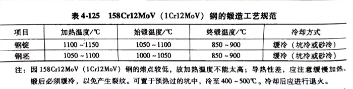 158Cr12MoV(1Cr12MoV)不銹鋼鍛(duan)造工藝規范見表(biao)4-125。
