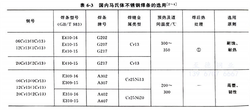焊(han)(han)(han)接(jie)材(cai)(cai)料一般采用(yong)與母材(cai)(cai)同材(cai)(cai)質的(de)(de)低(di)氫(qing)型焊(han)(han)(han)條。如焊(han)(han)(han)后不能(neng)熱處理,則可選用(yong)抗裂(lie)性能(neng)好的(de)(de)奧氏(shi)體(ti)鋼(gang)(gang)類型焊(han)(han)(han)條。此(ci)時相當于異種(zhong)鋼(gang)(gang)焊(han)(han)(han)接(jie),可運用(yong)舍夫勒(Schaeffler)組織圖、德龍(Delong)組織圖,合理選擇(ze)焊(han)(han)(han)條,并嚴格控制母材(cai)(cai)對焊(han)(han)(han)縫的(de)(de)稀釋(shi)。國內馬氏(shi)體(ti)不銹(xiu)鋼(gang)(gang)焊(han)(han)(han)接(jie)用(yong)焊(han)(han)(han)條見表6-3,國外馬氏(shi)體(ti)不銹(xiu)鋼(gang)(gang)焊(han)(han)(han)條的(de)(de)選用(yong)見表6-4。