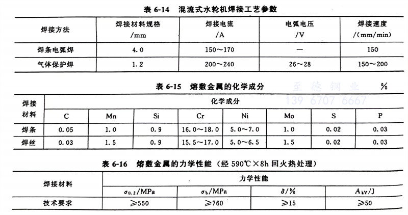 焊(han)接(jie)材料:Cr16-Ni5-Mo1合金體(ti)系(xi)的(de)HS367L焊(han)絲及配套(tao)焊(han)條,熔敷金屬的(de)化學(xue)成(cheng)分和(he)力學(xue)性(xing)能(neng)分別列(lie)于表6-15和(he)表6-16,接(jie)頭的(de)力學(xue)性(xing)能(neng)列(lie)于表6-17。
