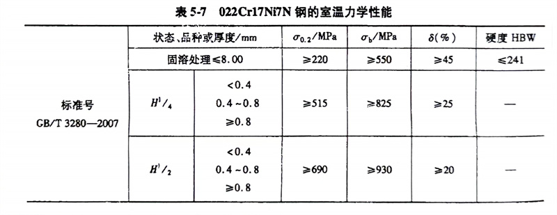 (5)力學性(xing)能: 022Cr17Ni7N、301L不銹鋼(gang)的室溫(wen)力學性(xing)能見表(biao)5-7。