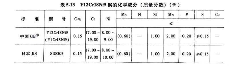 (1)化學成分: Y12Cr18Ni9、1.4305、303不銹鋼的化(hua)學成分見表(biao)5-13。
