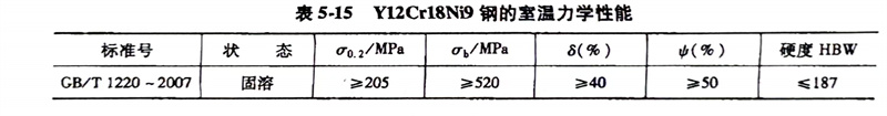 (7)力學性(xing)能: Y12Cr18Ni9、1.4305、303不銹鋼的室溫力學性能見表5-15。