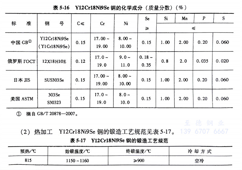 (1)化學成分: Y12Cr18Ni9Se、Y1Cr18Ni9Se、S30323不銹鋼的化學成分(fen)見表5-16。