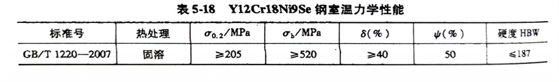 (5)力學性能:Y12Cr18Ni9Se不銹鋼的室溫力學性能見表5-18。