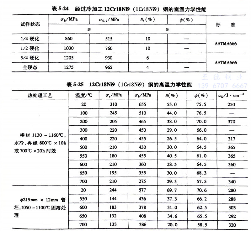 (5)力(li)學(xue)性能及加工性能: 12Cr18Ni9(1Cr18Ni9)302不銹鋼(gang)的力(li)學性能見表5-22、表5-23、表5-24和(he)表5-25。