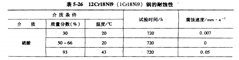 (6)耐蝕性: 12Cr18Ni9、1Cr18Ni9、1.4325、302不銹鋼的(de)耐(nai)蝕性見表5-26。
