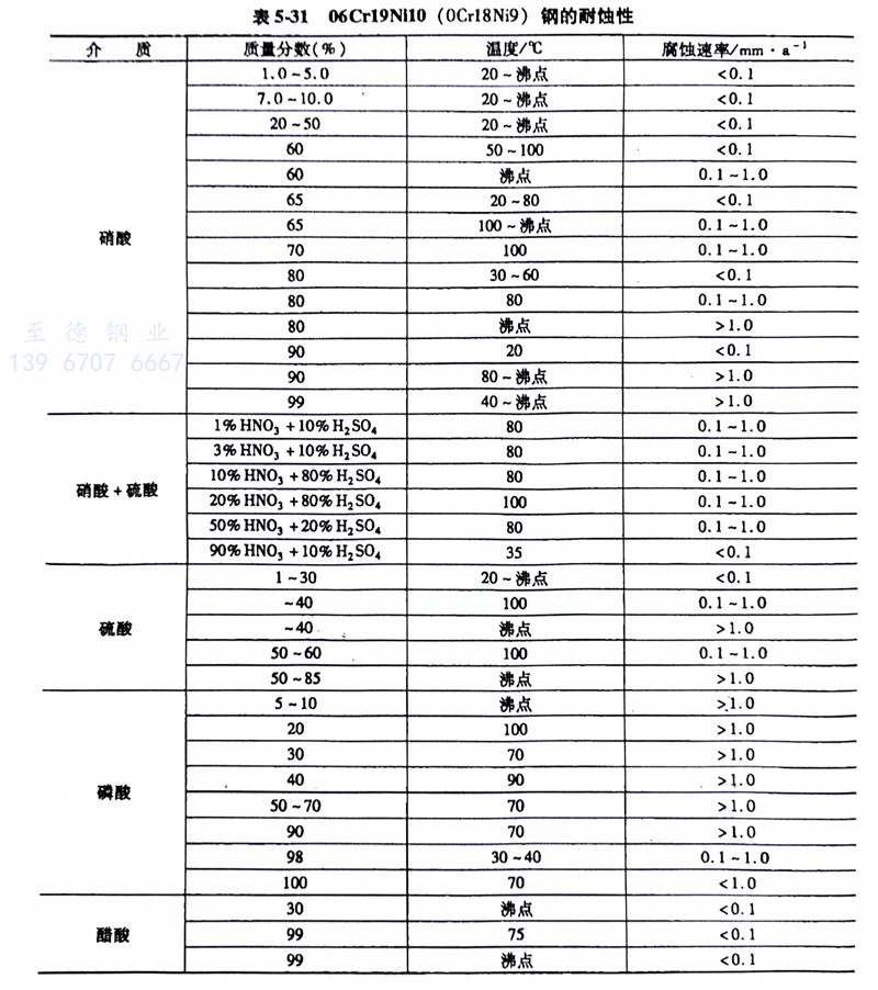 (7)耐蝕性: 06Cr19Ni10 、0Cr18Ni9、1.4301、S30408、304不銹鋼的(de)耐(nai)蝕性(xing)見表5-31。