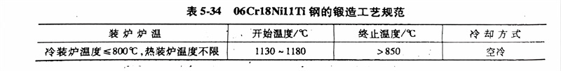 (2)熱(re)加工: 06Cr18Ni11Ti 、0Cr18Ni10Ti、321不(bu)銹鋼鍛造工藝規范見表5-34。