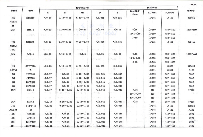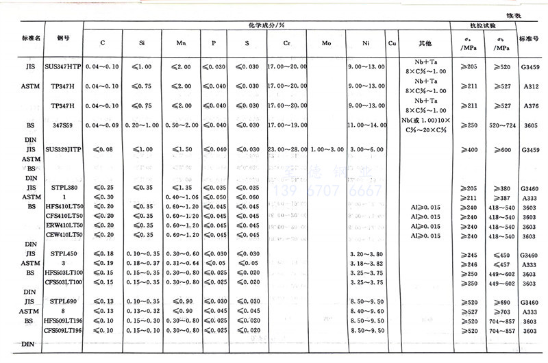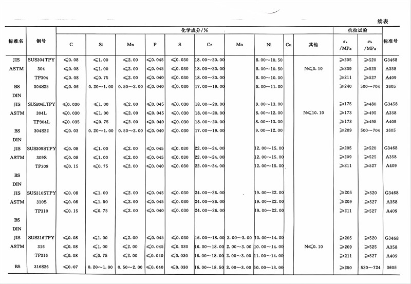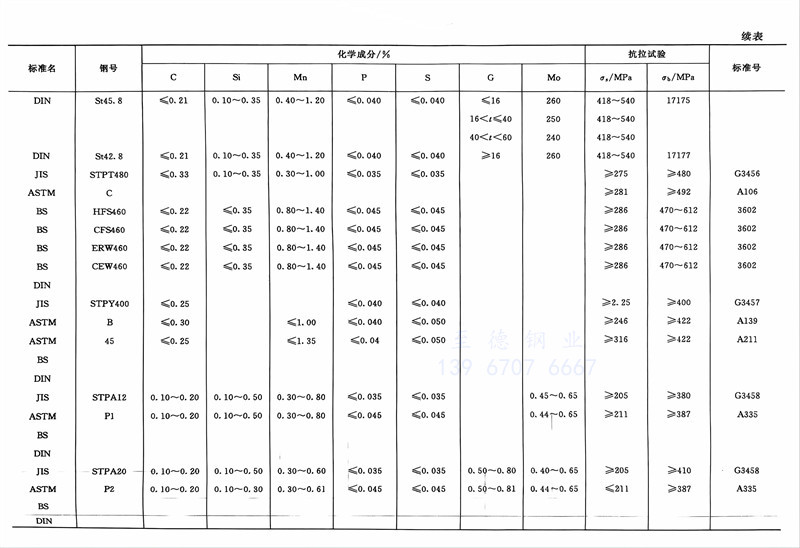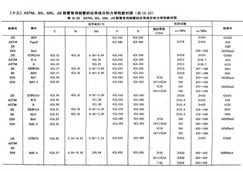 ASTM、BS、DIN、JIS 標準配管(guan)常(chang)用鋼(gang)管(guan)的化學成分(fen)和力學性能對照表(biao)