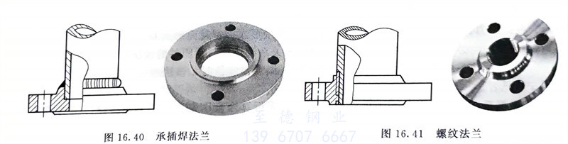 的特(te)點是管(guan)(guan)子與(yu)法(fa)蘭之(zhi)間用(yong)螺紋(wen)(wen)連接(jie),在法(fa)蘭內孔加(jia)工(gong)螺紋(wen)(wen),將帶螺紋(wen)(wen)的管(guan)(guan)子旋合進去,不(bu)必焊接(jie),如圖16.41所示。因而,具(ju)有方(fang)便(bian)安裝(zhuang)、方(fang)便(bian)檢修(xiu)的特(te)點。螺紋(wen)(wen)法(fa)蘭有兩種(zhong),一(yi)種(zhong)螺紋(wen)(wen)法(fa)蘭公稱壓力較低(di),一(yi)般用(yong)在鍍鋅鋼(gang)管(guan)(guan)等不(bu)宜焊接(jie)的場合,溫度反復(fu)波動或(huo)高(gao)于260℃和低(di)于-45℃的管(guan)(guan)道(dao)也不(bu)宜使用(yong)。另一(yi)種(zhong)用(yong)于高(gao)壓工(gong)況,利(li)用(yong)帶外螺紋(wen)(wen)并加(jia)工(gong)成(cheng)(cheng)一(yi)定形狀(zhuang)密封(feng)面的兩個(ge)管(guan)(guan)端配透(tou)鏡墊(dian)加(jia)以(yi)密封(feng)。這種(zhong)法(fa)蘭以(yi)往多用(yong)于合成(cheng)(cheng)氨生(sheng)產。此外,在任何可能(neng)發生(sheng)裂(lie)隙(xi)腐蝕、嚴重侵蝕或(huo)有循環載(zai)荷的管(guan)(guan)道(dao)上,應避免(mian)使用(yong)螺紋(wen)(wen)法(fa)蘭。
