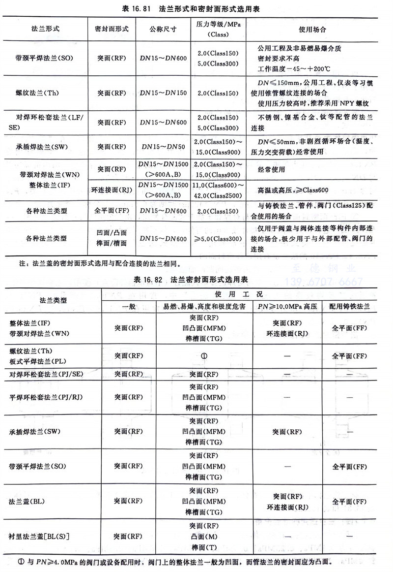 化(hua)工法蘭(lan)標準給出(chu)了石油石化(hua)、化(hua)工工程中常用的法蘭(lan)形式及密封面形式的組合,具體(ti)見(jian)表(biao)16.81和表(biao)16.82。