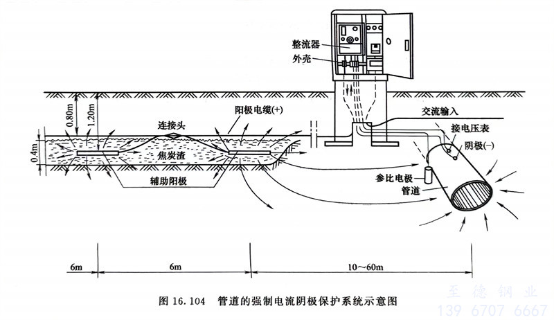 管道的(de)強制(zhi)電流陰極保護系統見圖16.104。