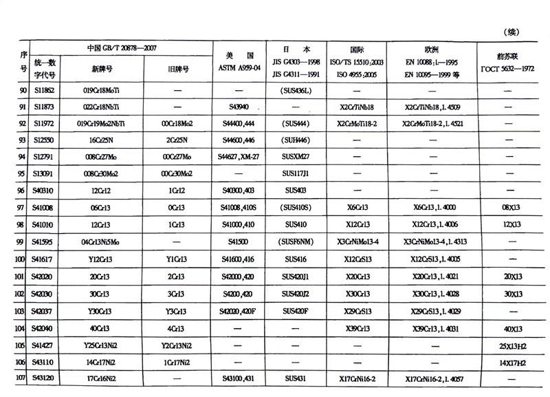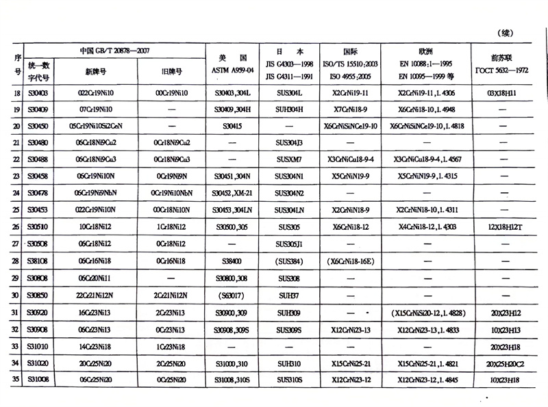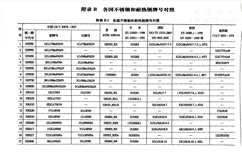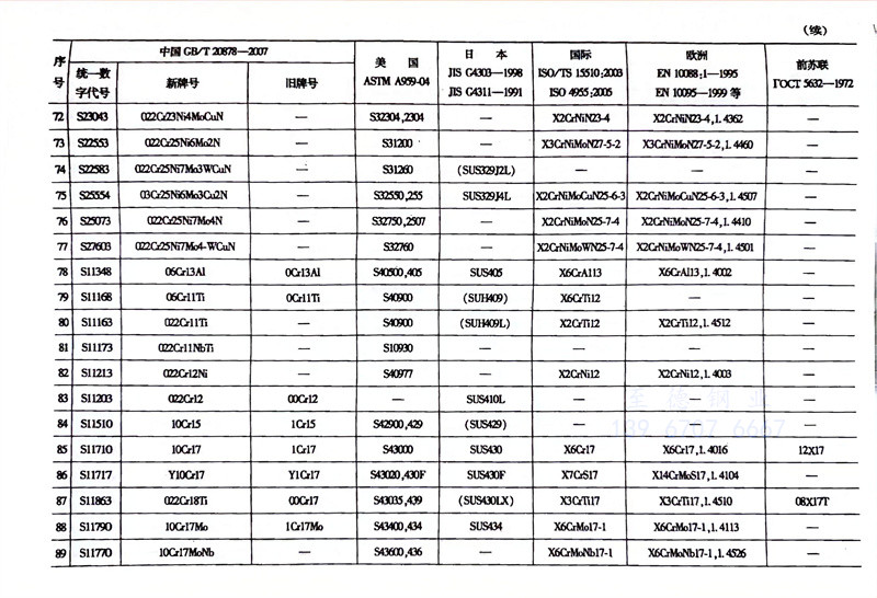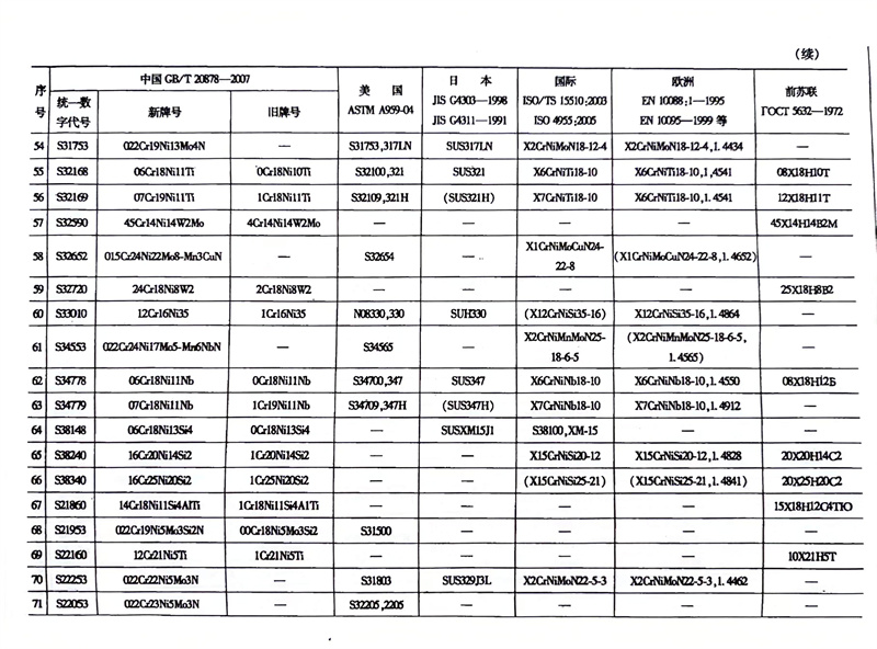 各國不銹鋼和耐熱鋼牌號對照表