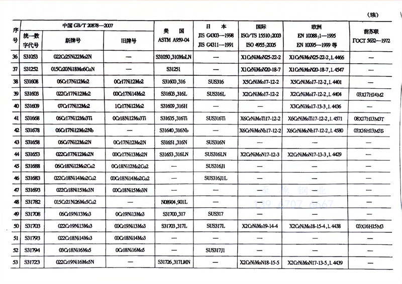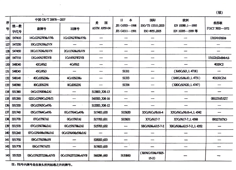 各國不(bu)銹鋼和耐熱(re)鋼牌號對照表