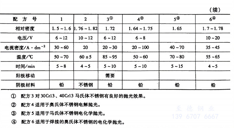 (2) 配方4適用于奧氏體不銹鋼電解拋光。