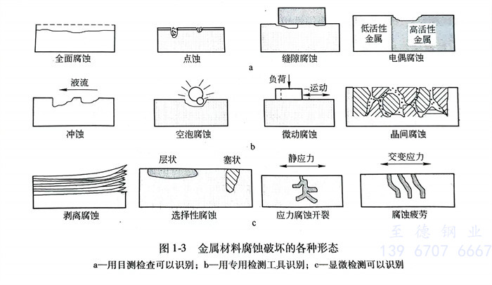 圖(tu)(tu)1-3給(gei)出了主要(yao)腐蝕破壞的形(xing)態(tai)特征示意圖(tu)(tu)。第一類目測檢(jian)查可以識別,見(jian)圖(tu)(tu)1-3a,第二類用專用檢(jian)測工具(ju)識別,見(jian)圖(tu)(tu)1-3b,第三類顯微檢(jian)測可以識別,見(jian)圖(tu)(tu) 1-3c。