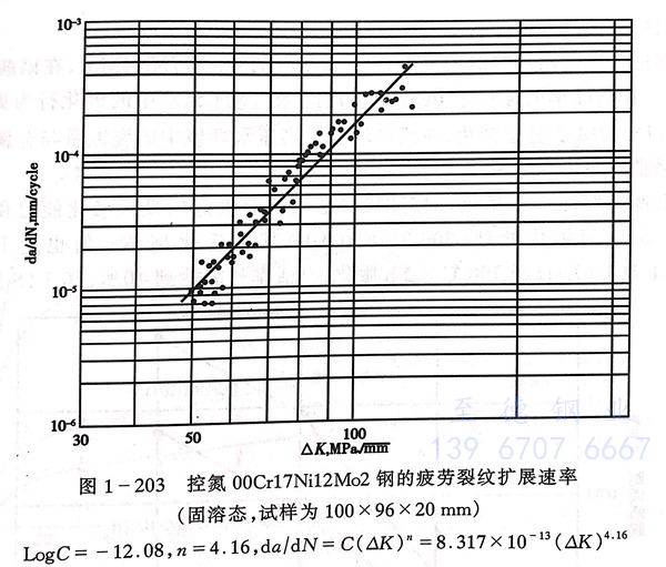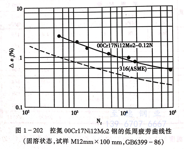 ( 控氮00C17N12Mo2)316NG不銹(xiu)鋼的室溫(wen)疲勞性能(neng)見(jian)圖 1-202 和 圖 1-203 。其疲勞性能(neng)優于316L不銹(xiu)鋼 。